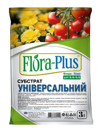 Flora Plus Універсальна – торфосуміш для вирощування кімнатних, садових, оранжерейних рослин та овочевих культур. Основні компоненти суміші забезпечують необхідні умови розвитку та росту всіх рослин, що потребують нейтрального pH середовища. На нашому сайті є можливість купити універсальний субстрат для рослин Флора Плюс з безкоштовною доставкою та за кращою ціною.