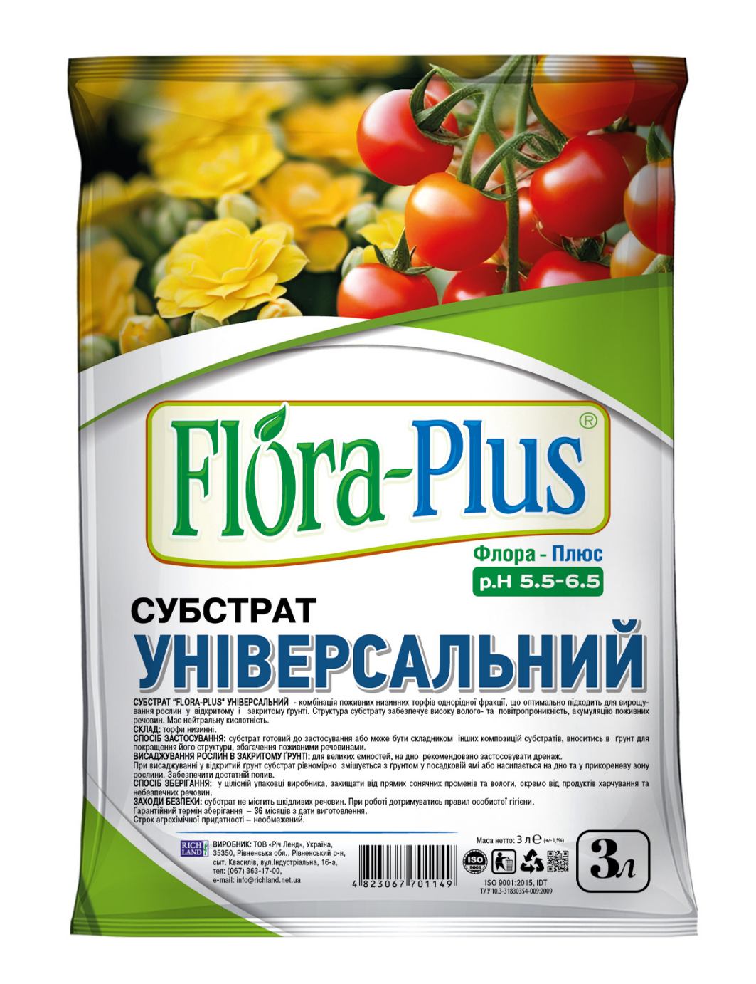Призначений:Для вирощування всіх рослин, які потребують нейтрального рН середовища – кімнатних рослин, балконних та терасних квітів, рослин на відкритому грунті та в садках.